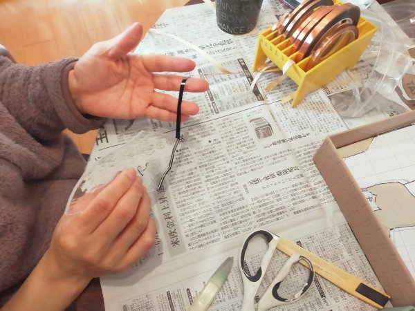 銅テープの裏にはあらかじめ粘着剤がついており、シールのように貼ることができます。