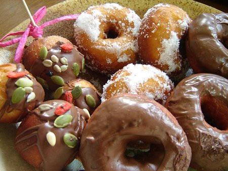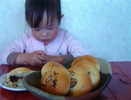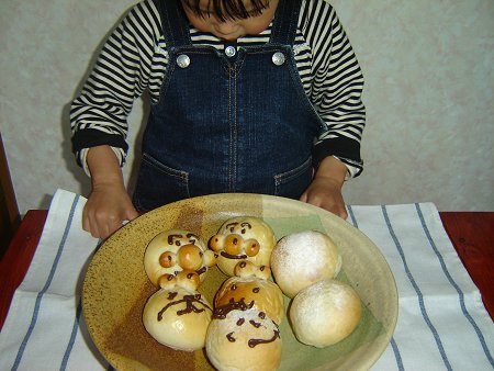 髪の毛や口の部分は生地にココアパウダーを混ぜ込み、色を付けました。