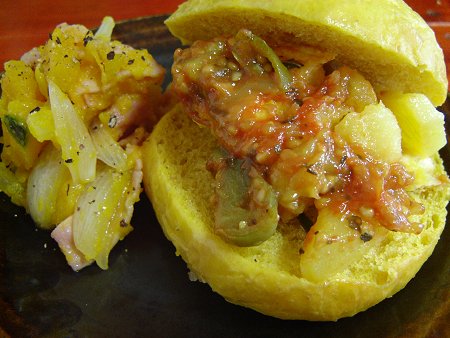 畑をお借りしている友人の庭には、毎年沢山のブルーベルリーが実っています。ブルーベリーが甘酸っぱくてとても美味しい『ヨーグルトパン クリームサンド』です。