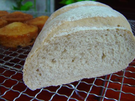 昨日に続き、ステンドグラスの仕事緒合間に、自家製ヨーグルトで『ヨーグルトパン』を作りました。粉には強力粉のみを使用しました。