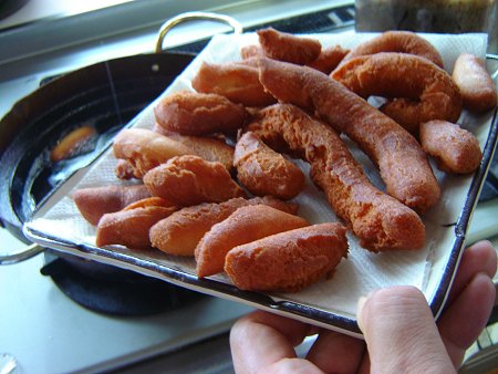 その作業があまりにも馬鹿らしいので、次のロットから1回に捏ねる量を500gに減らしてみました。そして、10秒捏ねてはシャモジで寄せて、また捏ねるを繰り返す事10回。今度は、かなり良く潰れてくれました。それでも、潰れず逃げ切った豆があり、指で潰す事に。