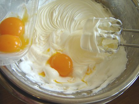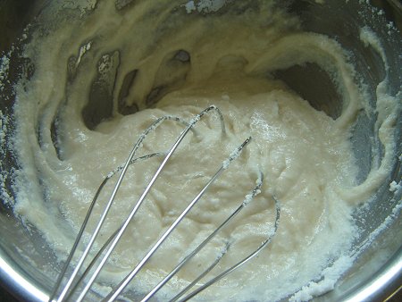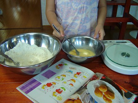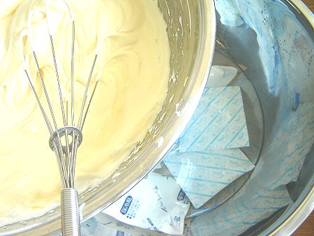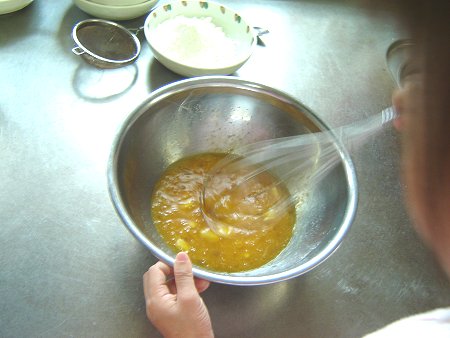 ⑧このボールを容器の底に叩き付けながら入れていきます。こうすると、空気を抜く事ができます。