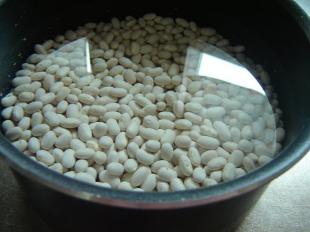浸してから7時間後。大豆が水分を含み、ふっくらしています。
