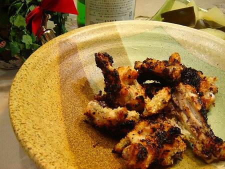 チキンを焼いてみたり・・少し焦げていますが、主人特製のガーリックハーブチキン。