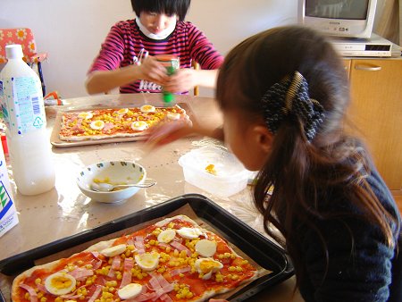 翌日はみんなでピザも作りました。