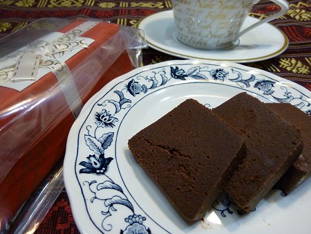 デザートのチョコレートケーキ。こちらも頂き物で濃厚なチョコレートケーキでした。