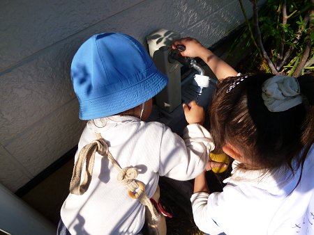 次女と蛇口の奪い合いをしています。