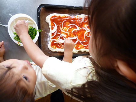 緑色の食材は茹でてから加えましたが、入れる前に良く絞り水気をとって下さい。