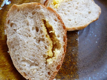 パンにも人参の葉を入れて食べています。人参の葉と全粒粉のパン。