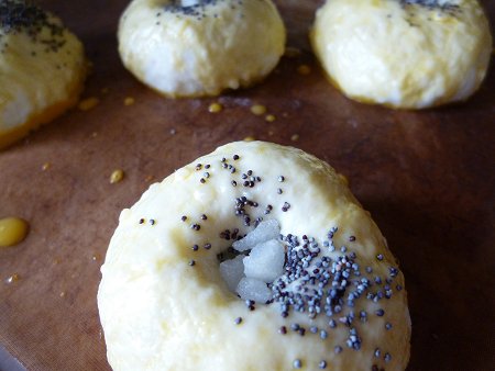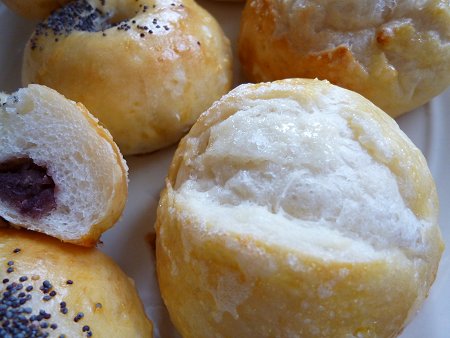 焼成後。丸パンは焼く前にグラニュー糖を振りました。