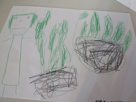 次女は5分でその場から退散・・ベランダでプランター栽培している小ネギを引き抜いていました・・(悲)