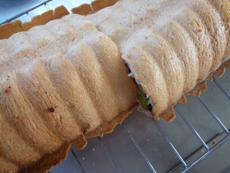 サツマイモパン 投稿日時: 2012年9月14日 投稿者: yuki lapin JUGEMテーマ:手作りパン 前回、作ったサツマイモパン。もう一度挑戦したくなりました。 今回も、甘く煮たサツマイモと胡麻、そして、胡桃も追加でいれました。 また、前回と同じ型に入れて2次発酵。こういう型は、蓋を閉じてしまうと、どの程度発酵されているのかが全く分からないのが難点。 焼成後。やはり・・発酵しすぎで、型から生地がはみ出ていました。でも、前回よりは綺麗にできたので、一安心。 ヨーグルト入りの生地で、酸味が程よくつきました。美味しいサツマイモパンができました。 今回も円型には、焼けず無念・・。次回の課題ができました。 にほんブログ村良ければクリックお願いします。