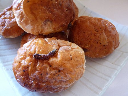 ふわふわドーナツ 投稿日時: 2012年9月22日 投稿者: yuki lapin JUGEMテーマ:手作りパン パン生地を揚げて作る、ふわふわドーナツです。 上白糖を付けて、甘く仕上げました。 <今回のパン生地 レシピ> 強力粉 200g 片栗粉 50g 砂糖 50g バター 50g 塩 小さじ半分 インスタントドライイースト 小さじ1 水 150g ※水分は、牛乳するとより美味しいです。水は120g位入れて捏ね始め、様子を見ながら、残りの量を入れて調節下さい。耳たぶの固さより、柔らかめになったら終了です。 成形後。2次発酵に移ります。 2次発酵後。焼成に入ります。 真ん中の穴の作り方です。1次発酵後の生地を分割し、丸くしておきます。1つは、30~40g位。丸くした生地の真ん中に手を入れ、引きちぎるように穴を開け、大きくなるように引っ張ります。 少し乱暴なやり方かもしれませんが、2次発酵段階で綺麗に膨らみますので問題無しです。 160~170度の油でキツネ色が付くまで揚げます。昨日作り、今日の朝食でも食べました。翌日でも美味しいのですが・・やはり、揚げ物は揚げたてに勝るものはありません。 今回は、片栗粉を入れました。生地の歯切れがよく、サクッとした食感が加わります。また、中力粉にすると、より軽い食感になります。粉を変えて作るのも楽しいです。 粉を変えると、水分量も変わります。あくまで、生地の様子を見ながら、水分量は調節するのがベストです。 にほんブログ村良ければクリックお願いします。