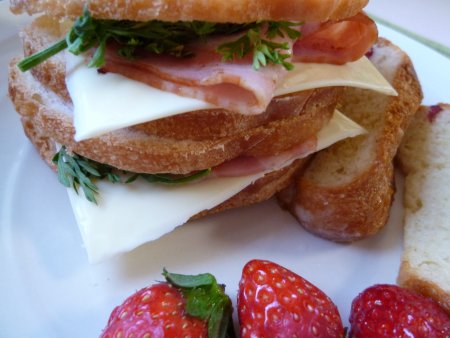 今日の朝食。チーズとベーコンのサンドイッチ。