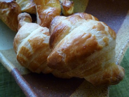 折り込む回数により、サクッと感が異なるクロワッサン。 私のクロワッサンは、まだ折り込む回数も少なく、お店のようなパンには程遠いか・・まあ、美味しいから良しとします。