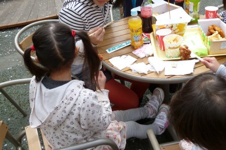 いいえ、一口食べて、「もう~いらない~!!」とその場から走り去りました・・。無念です。