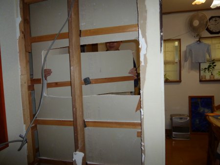 幸い、筋交いは無かったので、思い切ってボードを外します。