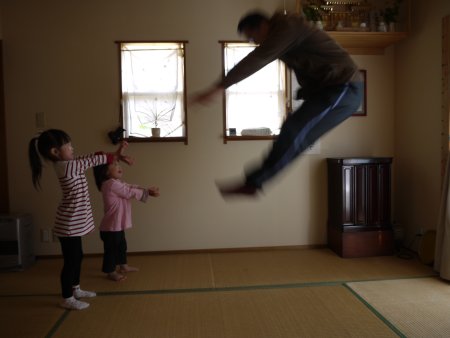 一番驚いたのは、いつも運動が得意でないと言い、子供と運動するのを嫌がっている主人の跳躍力。なんだ・・まだまだいけるじゃん!と確信。もう少し、子供達の為に動いてもらおう・・。