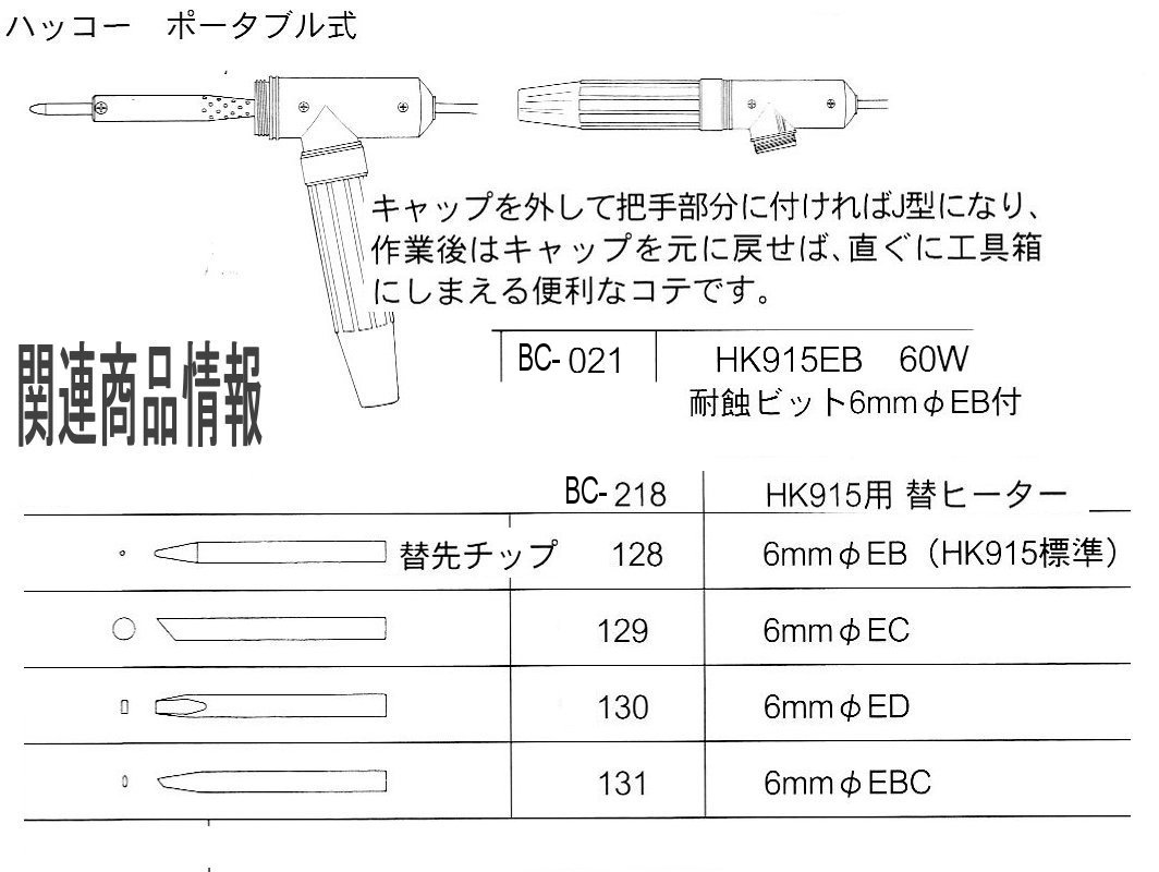 ハッコー製 6mm径仕様の電熱線ハンダコテ用